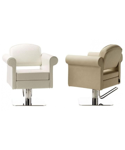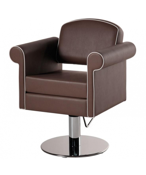 Кресло для клиента оригинальной формы, выполнено из высококачественного поролона, каркас обтянут искусственной кожей, мягкие подлокотники. Отличается наличием декоративных швов. Комплектуется стационаром, гидроподъемником с основанием на выбор: диск, квадрат.
