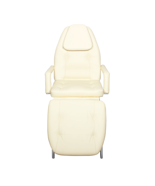 Может выполнять функцию косметологического кресла, кушетки и массажного стола. Кушетка раскладывается горизонтально и в спинной части предусмотрен вырез для лица, закрывающийся съемной мягкой подушкой. Мягкая часть кушетки разделена на три сегмента: сиденье, спинка и подушка под ноги. Для дополнительно удобства данная модель комплектуется подлокотниками, которые по необходимости Вы сможете легко снять.