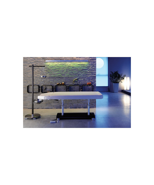 Кушетка "AYURVEDA" предназначена для проведения аюрведических процедур. Кушетка оснащена одним электромотором, с помощью которого регулируется высота, регулировка осуществляется за счет ножного пульта управления. Комплектуется вогнутым  подголовником. Это позволяет клиенту чувствовать себя комфортно на протяжении всей процедуры. Матрас бежевого цвета маслостойкий и выполнен без швов (невозможно выбрать другой цвет матраса). Основание кушетки изготовлено из натурального дерева с алюминиевыми вставками.